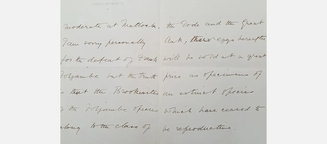 In another part of the letter Harcourt again doesn’t mince his words. Whilst personally sorry for the defeat of the Liberal MP Francis Foljambe in the election, he shows his true colours writing “the truth is that the brookeites of the Foljambe species belong to the class of the Dodo and the Great Auk, their eggs hereafter will be sold at a great price as specimens of a great species which have ceased to be reproductive”.
