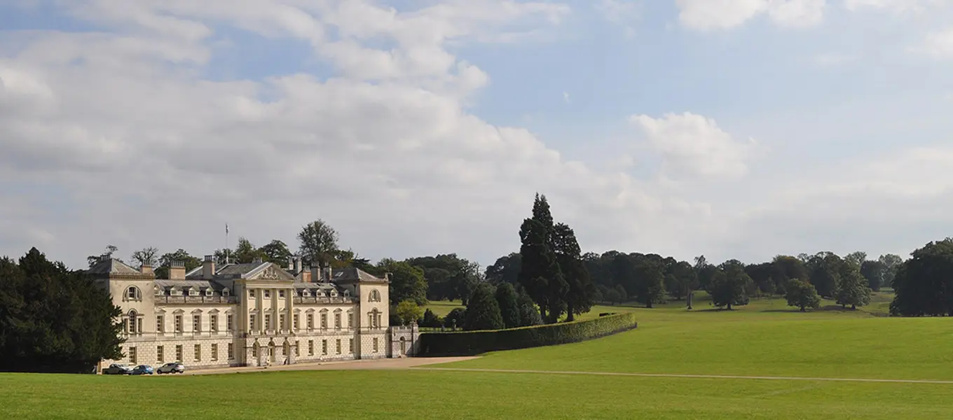 Woburn Abbey amidst its parkland, courtesy of Stevekeiretsu