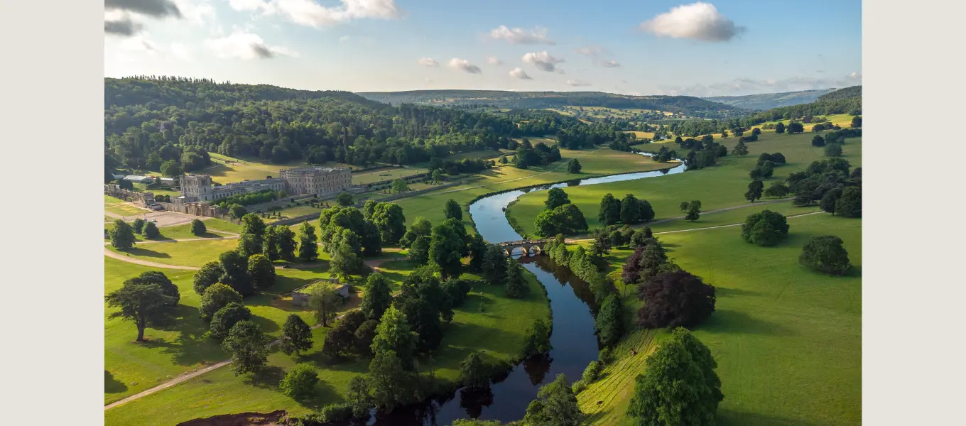 The description of Pemberley in the novel closely matches Chatsworth’s setting. Austen describes Pemberley as being surrounded by natural beauty - rising hills, a flowing river, and carefully designed yet seemingly untouched gardens. Chatsworth’s location on the banks of the River Derwent, with the landscape shaped by Capability Brown, fits this description perfectly.