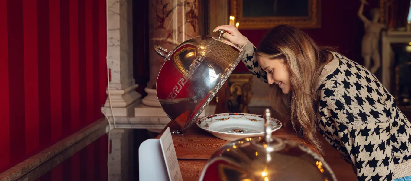Inspired by menus from the 6th Duke of Devonshire’s archive, food historian and scent artist Tasha Marks recreated the aromas of the meal a 13-year-old Princess Victoria, later Queen Victoria, may have been served on the occasion of her first formal dinner with adults in 1832, held in the Great Dining Room at Chatsworth. These were contained under silver cloches which visitors could 'lift and sniff'!
