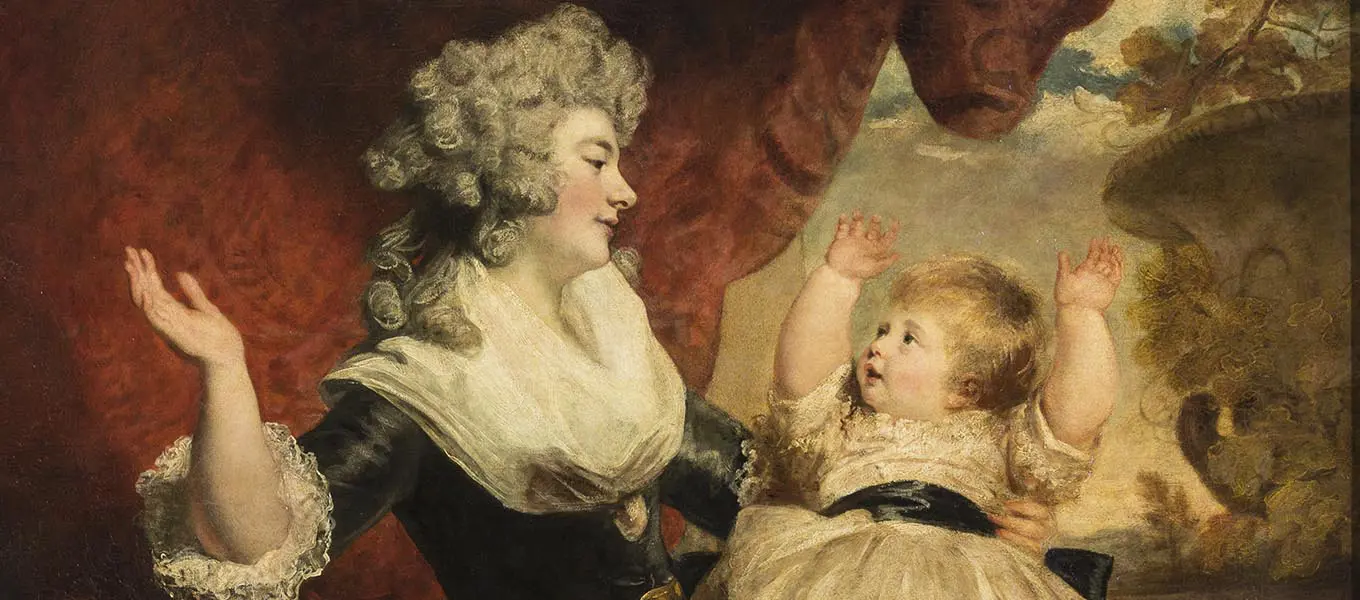 An unusual composition for Reynolds, it captures a moment of spontaneous and joyful reaction between mother and child, likely inspired by his reading of Jean-Jacques Rousseau’s theories of childhood and natural education.
