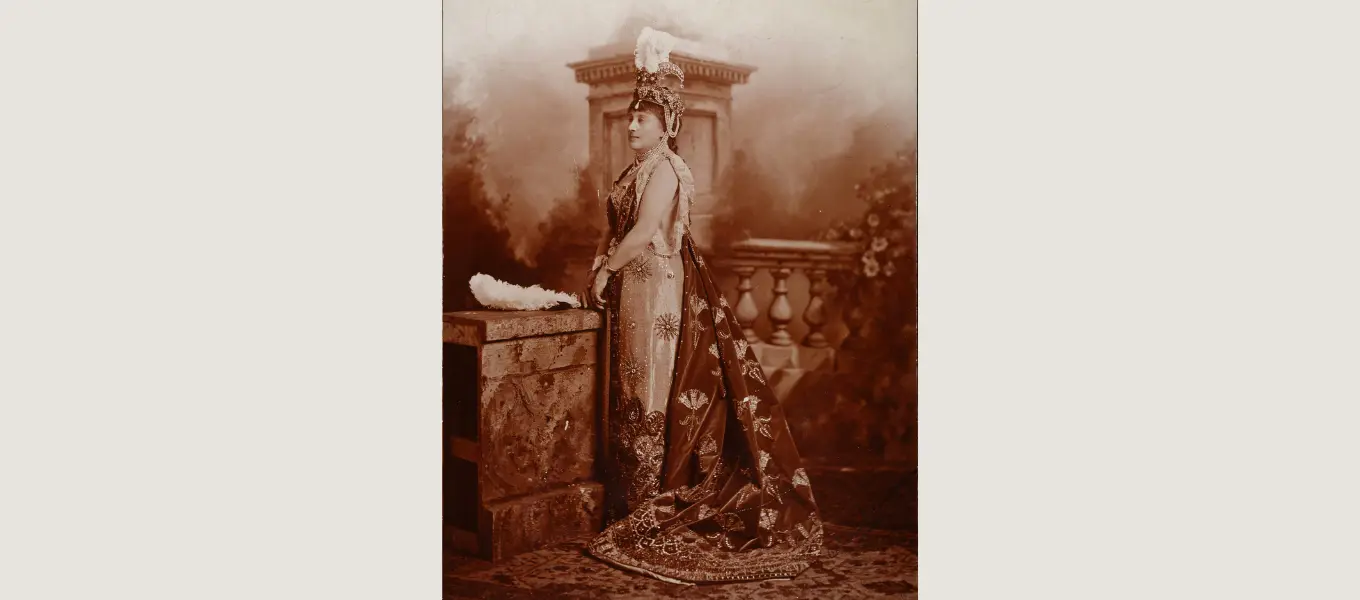 For the grand 1897 ball, Duchess Louise opted to portray Zenobia, the third-century Queen of Palmyra, an idea which may have been inspired by Inigo Jones’s costume designs for court masques preserved by Chatsworth House Trust in the Devonshire Collections.