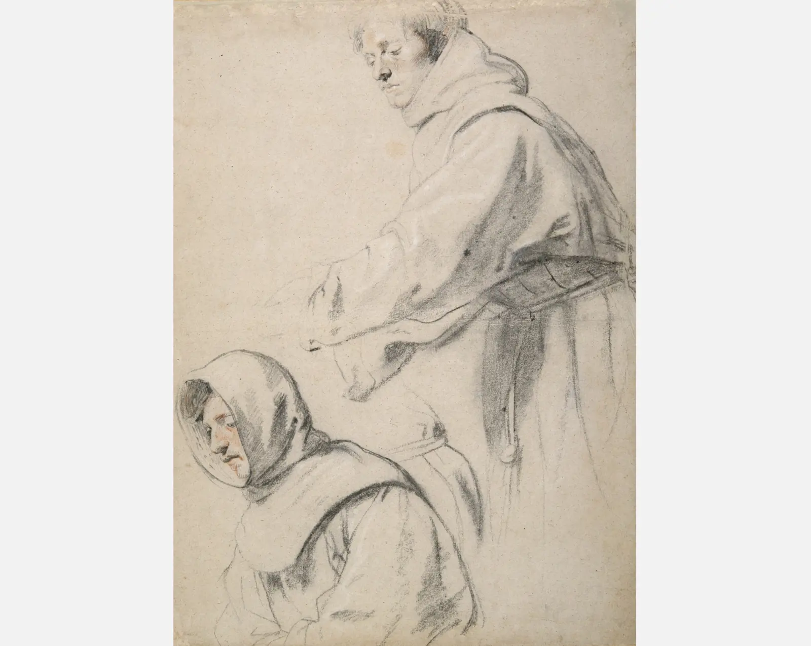 Two Franciscan Friars is a study for an altarpiece showing the last communion of St Francis of Assisi, painted by Rubens for a church in Antwerp. The figures in the study are recognisable in the final painting although their spatial relationship to one another has changed.