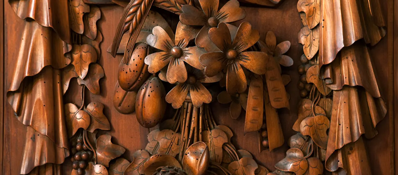 Watson was also responsible for the carved pendants which enrich the cedar panelling. His drawings for these pendants, and many other carved details at Chatsworth, survive in the archives, as do the payments for many of the fittings of the 1st Duke’s house such as the £360 paid in London for the pair of large gilt-brass candlesticks that stand on the steps of the Altarpiece to this day.